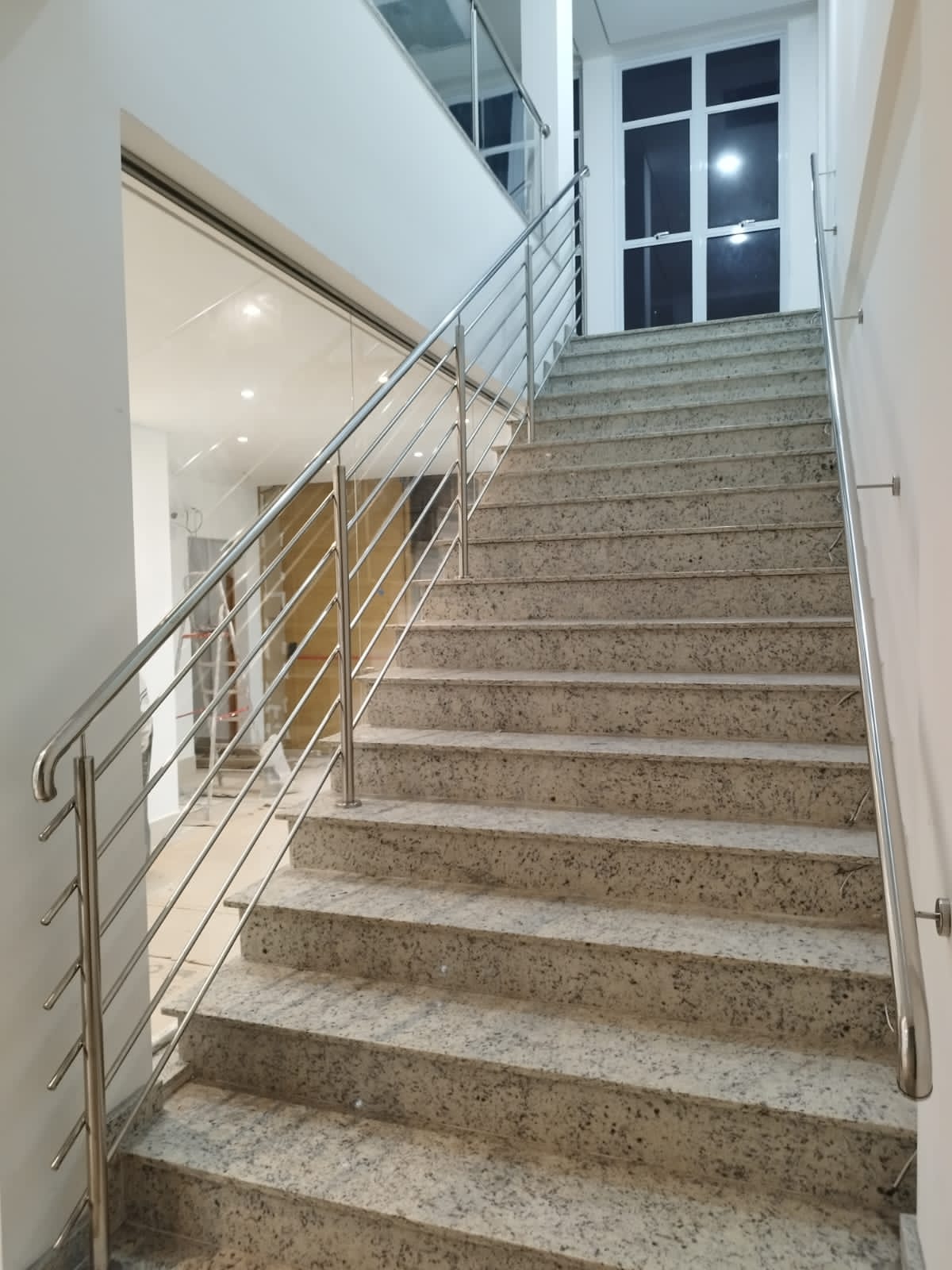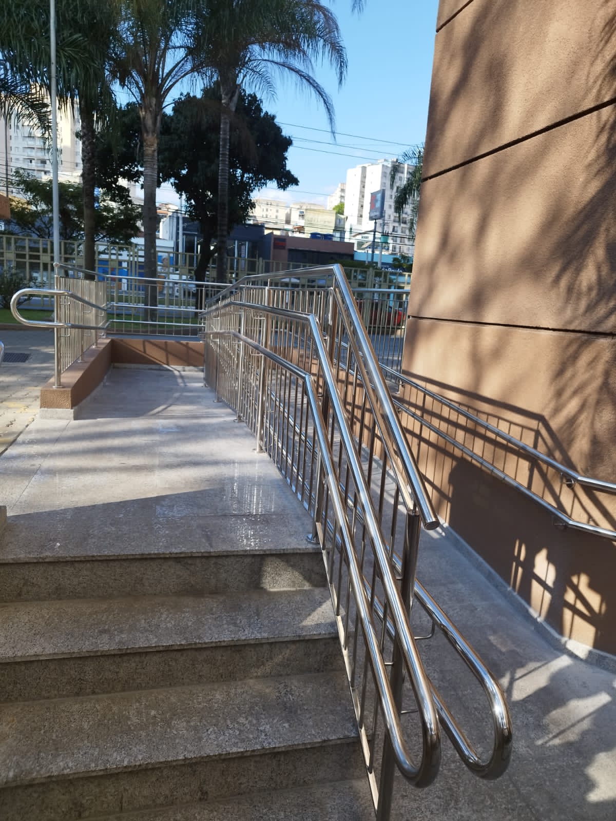 - Corrimãos em Aço Inox: Oferecem segurança, resistência e um acabamento sofisticado para escadas, rampas e áreas de circulação, combinando funcionalidade e estética.